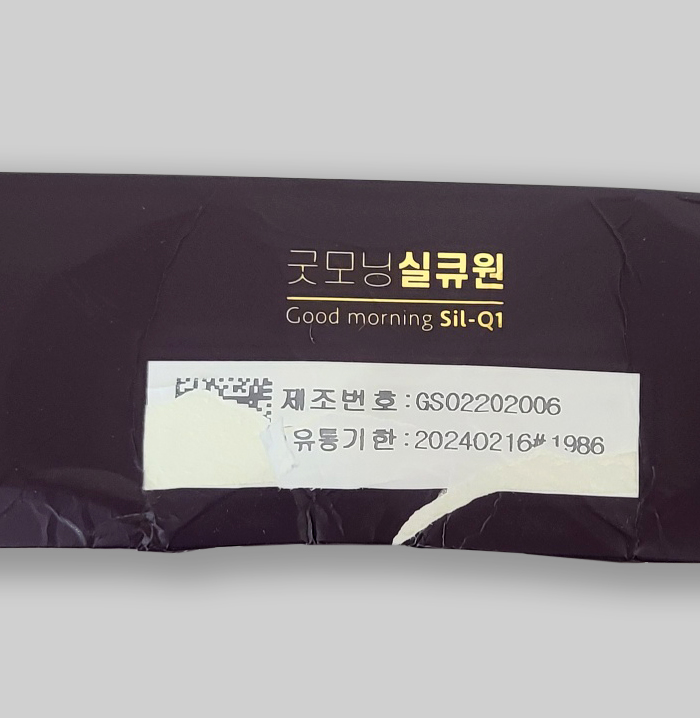 상품 보호용 비닐랩이 뜯어져 있거나 QR코드 제조번호와 유통기한