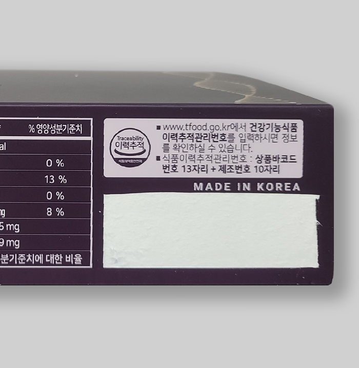 표기가 없는 상품은 부정 유통된 상품으로 심각한 현행법률 위반입니다.